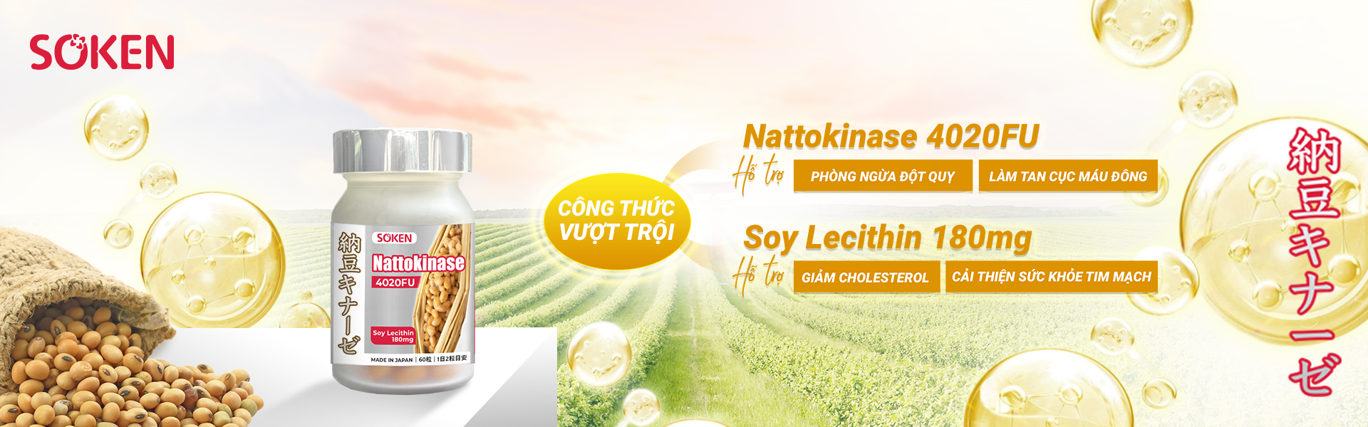 Ngoài ra, viên uống Soken Nattokinase còn chứa Soy Lecithin giúp cân bằng mỡ máu, cải thiện tuần hoàn và bảo vệ sức khỏe tim mạch. Đồng thời, nó hỗ trợ chức năng não bộ, tăng cường trí nhớ và chăm sóc gan hiệu quả.